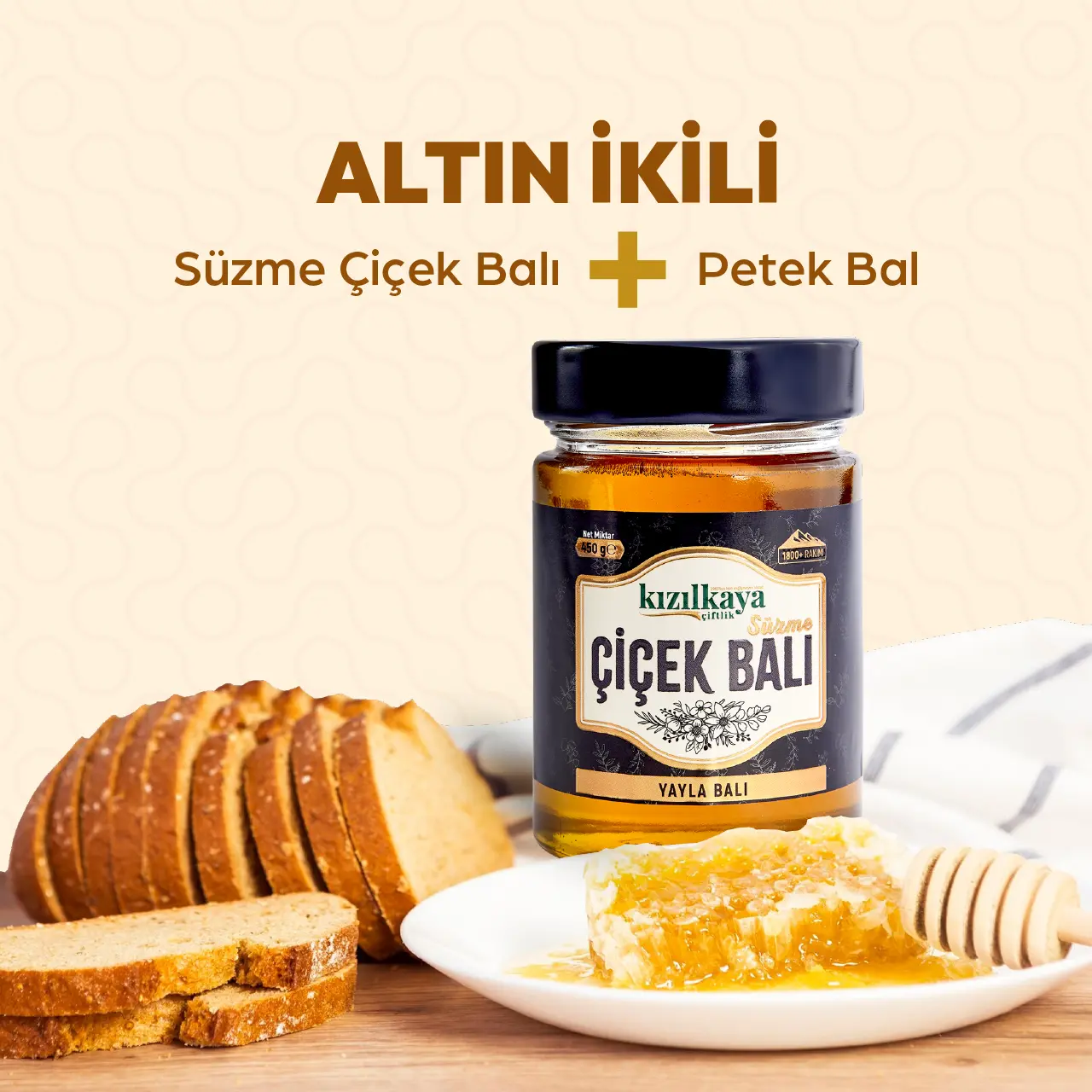 Doğu Anadolu bölgesinin en az 1800 metre yükseklikteki yaylalarından derlenen doğal çiçek özlerinden üretilen bu süzme bal, kahvaltı sofralarınıza doğanın saf lezzetini getiriyor. Katkısız ve organik yapısıyla tatlılarda, içeceklerde ve sağlıklı atıştırmalıklarınızda keyifle tüketebilirsiniz. Her kaşıkta enerji dolu ve zengin aromalı bir deneyim sunar.