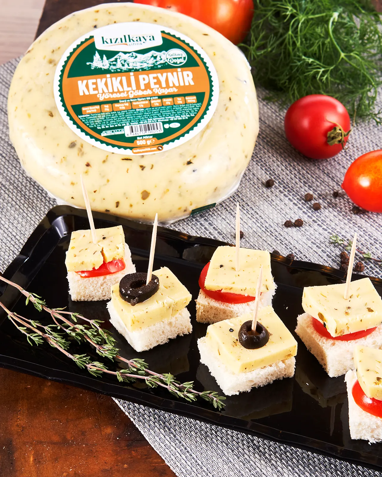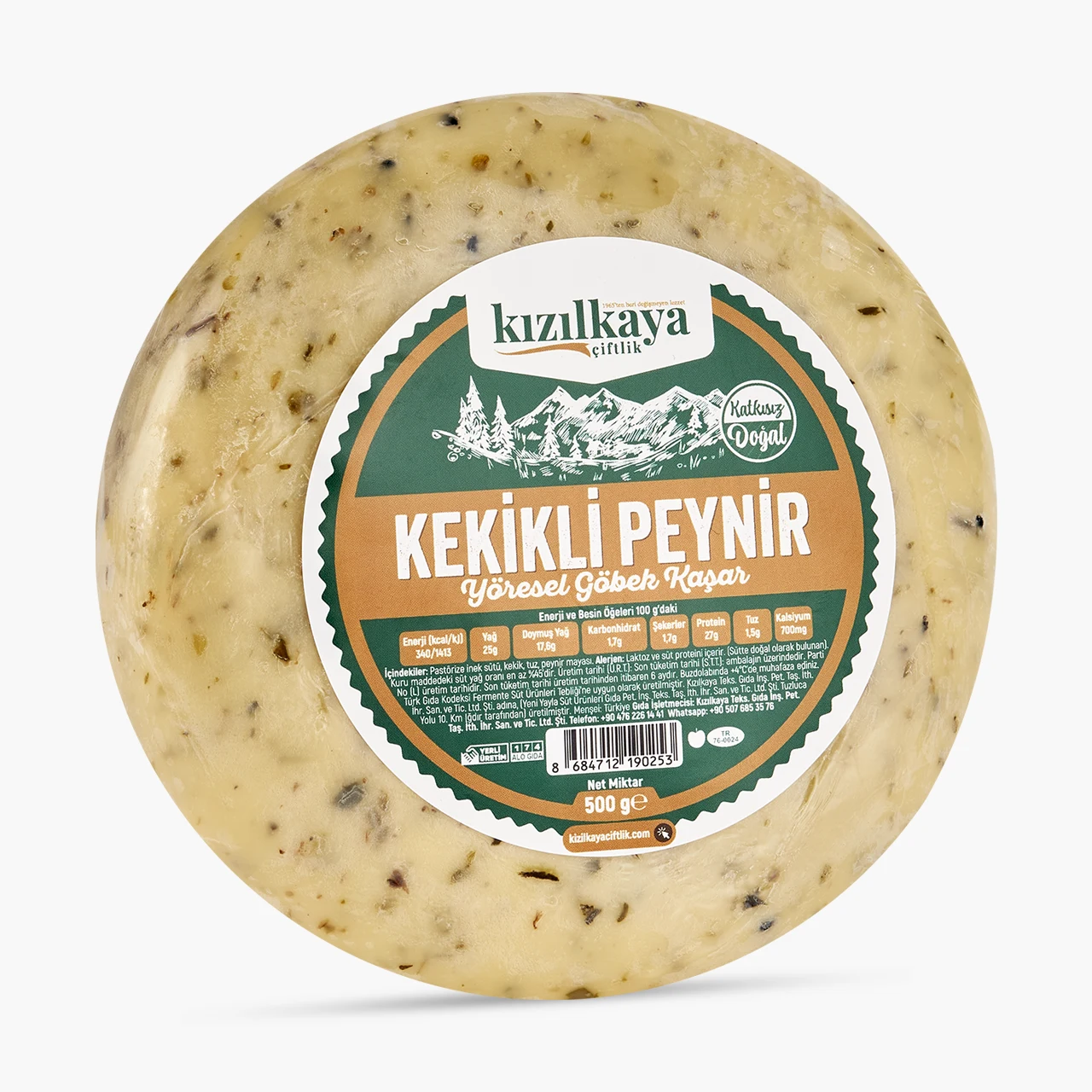 Doğal sütlerin aroması, taze kekikle buluşuyor! Kekikli peynir, hem lezzeti hem de eşsiz kokusuyla sofralarınıza yenilik katıyor. Doğu Anadolu’nun verimli otlaklarından gelen sütlerle üretilen bu peynir, kahvaltılarda ya da özel tariflerinizde kullanabileceğiniz benzersiz bir üründür. Doğallığı keşfedin, sağlığınıza lezzet katın!